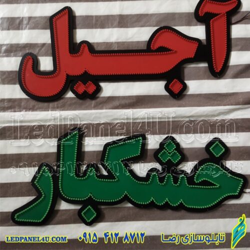 📌 تابلو ال ای دی آجیل 👌 ال ای دی درجه یک HQ ⬛ زمینه ام دی اف سه میل مشکی به همراه فیبر پشت تابلو 🥇 دارای یکسال ضمانت ✅ ارسال بین 2 تا 3 روز کاری ☎️ جهت مشاوره و سفارش تابلوهای سفارشی با اندازه ، فونت و طرح دلخواه با ما تماس بگیرید. 📞 شماره تماس:09154128712