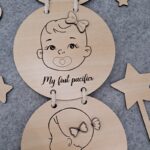 آویز چوبی یادگاری آویز یادگاری اولین های نوزاد، چوبی، شامل 3 دیسک 15 سانت. کد 553 – (اقساطی)