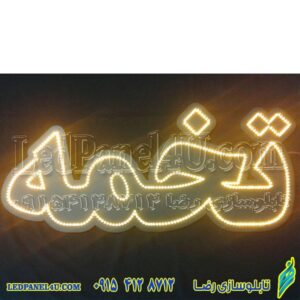 👍 شبرنگ داخل حروف تابلو ال ای دی تخمه داغ کد 19349 جلوه بهتری به تابلو می‌دهد که در صورتیکه بیشتر از 3 عدد تابلو سفارش داده باشید به صورت رایگان شبرنگ نصب خواهد شد.