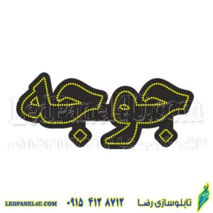 شبرنگ داخل حروف تابلو ال ای دی جوجه کد 19046 جلوه بهتری به تابلو میدهد که در صورتیکه بیشتر از 3 عدد تابلو سفارش داده باشید به صورت رایگان شبرنگ نصب خواهد شد.