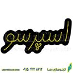شبرنگ داخل حروف کلمه اسپرسو جلوه بهتری به تابلو میدهد در صورتیکه تعداد بالای دو عدد تابلو سفارش داده باشید به صورت رایگان داخل حروف نصب خواهد شد.