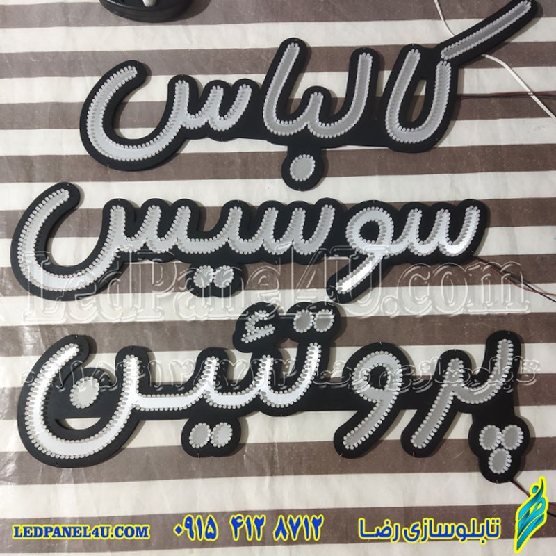 | انتخاب سایز تابلو (پهنای کلمه) دو 5 و 6 حرفی تک | 50 سانتی ,70 سانتی ,90 سانتی |