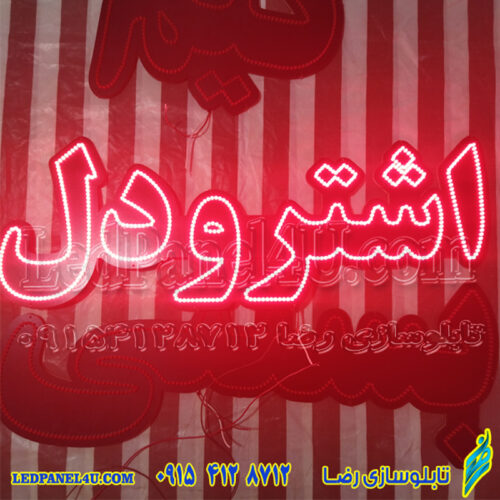 شبرنگ داخل حروف تابلو ال ای دی پنیر کد 14606 جلوه بهتری به تابلو میدهد که در صورتیکه بیشتر از 3 عدد تابلو سفارش داده باشید به صورت رایگان شبرنگ نصب خواهد شد.