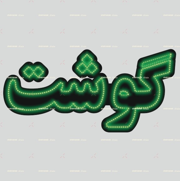 شبرنگ داخل حروف تابلو ال ای دی گوشت کد 97300 (اقساطی) جلوه بهتری به تابلو میدهد که در صورتیکه بیشتر از 3 عدد تابلو سفارش داده باشید به صورت رایگان شبرنگ نصب خواهد شد.