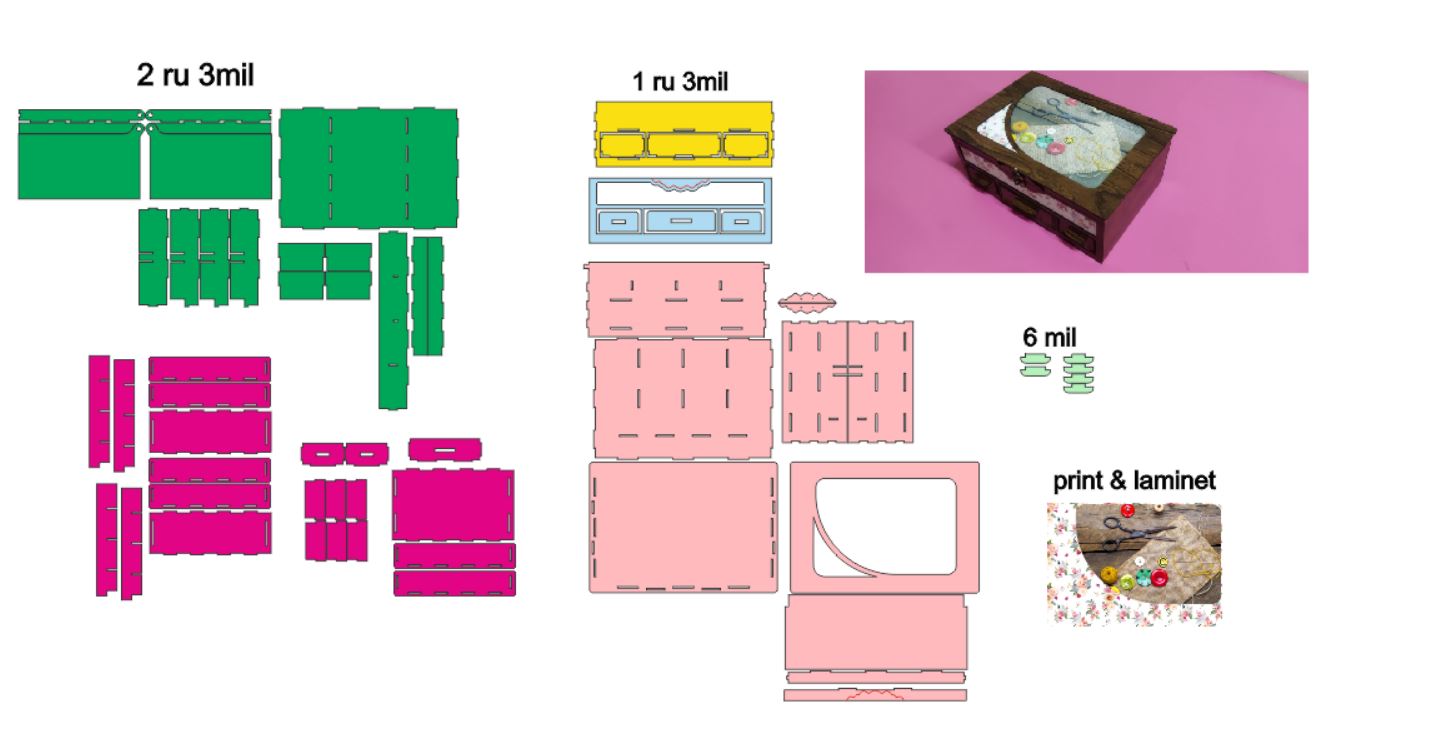 دانلود طرح آماده لیزر باکس یا جعبه خیاطی سه کشو کد 2034 (اقساطی)