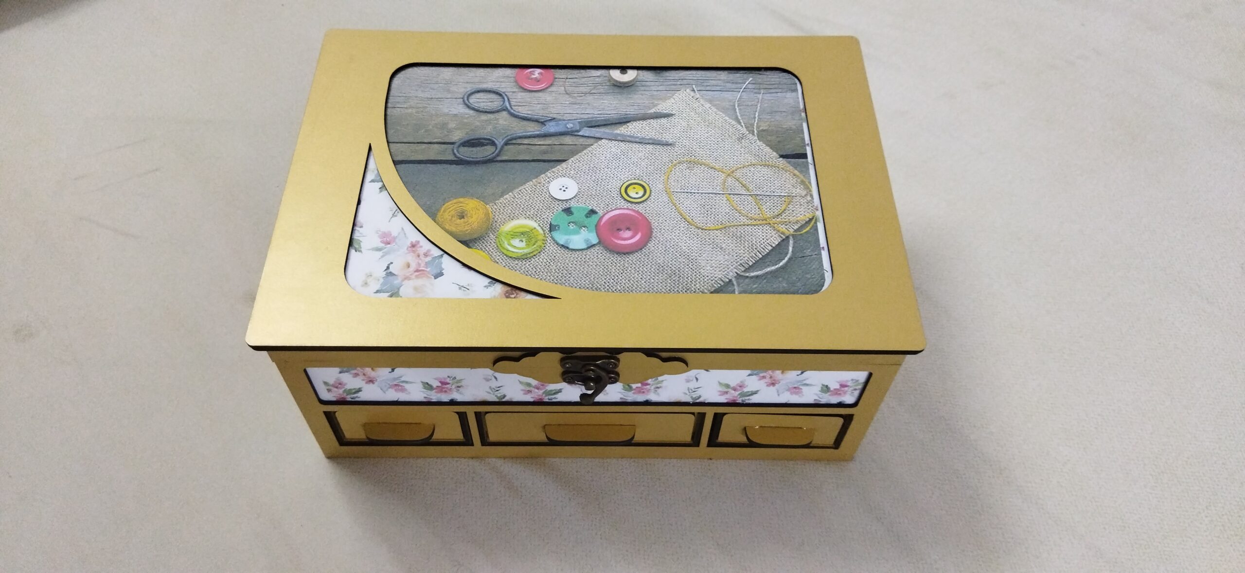 ✅ دانلود طرح آماده لیزر باکس یا جعبه خیاطی سه کشو (جعبه بدون متعلقات داخل میباشد)