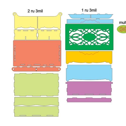 ✅ دانلود طرح آماده لیزر جعبه یا باکس جا قاشقی با مولتی ✅ توسط نرم افزار Corel Draw طراحی گردیده و با فرمت های cdr و Ai می باشد. ✅ اجرا و تست شده است. ✅ ضمنا همین کالا رو میتونید سفارش بدید تا بصورت ساخته شده تحویل شما گردد. ✅ قابلیت سفارشی سازی نیز وجود دارد. جهت سفارش طرح مد نظر خودتون، با ما تماس بگیرید . 09154128712